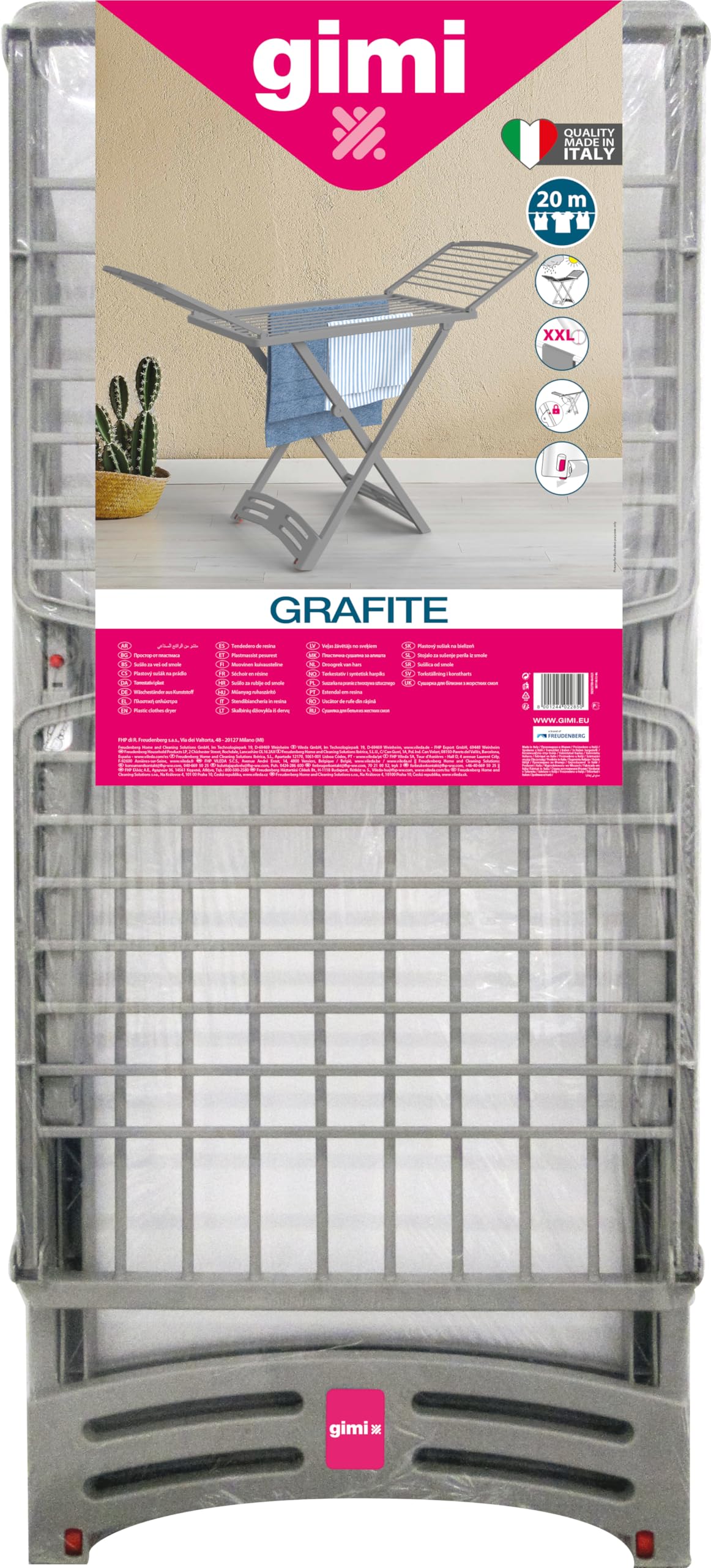 The Gimi Grafite Clothes Rack is a versatile and stylish solution for your laundry and storage needs, featuring a spacious 20 meters of hanging space, durable 100% resin construction, and convenient wheels for easy mobility. Weighing just 4.61 kg, it’s designed for effortless relocation and setup.