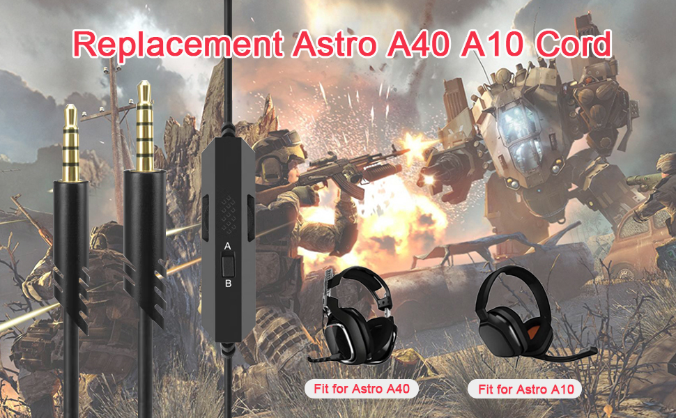 Replacement A10 A40 Cord Aux Cable with A&B Modes Inline Mute Volume Control and Mic Compatible with Astro A10 A40 A30 A50 Gaming Headsets to PC Mobile MixAmp PS4 and More