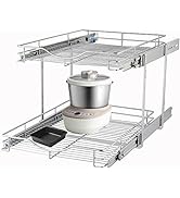 The DINDON 2 Tier Pull Out Cabinet Organizer is a polished chrome, heavy-duty kitchen storage solution designed to optimize cabinet space with two independently sliding wire baskets. Each tier supports up to 75 lbs and offers adjustable height settings to fit cabinets 20" wide by 21" deep. Easy to install with included hardware and smooth ball-bearing slides, it’s perfect for millennial professionals seeking a stylish, durable, and highly functional organization upgrade.
