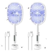 I recently purchased the 2 Pack Electric Fly Swatter 2 in 1 Bug Zapper Racket & Mosquito Zapper, and I have been extremely impressed with its performance. This product truly lives up to its claims of being a powerful bug zapper, with a voltage of 4000V that effectively eliminates flying insects on contact. One of the standout features of this bug zapper is its convenience and versatility. The fact that it comes in a pack of two is already a great value, but the added bonus of a USB charging base makes it even more convenient to use. I love that I can simply place the bug zapper on the charging base and have it ready to use whenever I need it. The stand also allows me to place it anywhere in my home, making it easily accessible whenever I spot a pesky insect. In terms of performance, this bug zapper does not disappoint. The electric fly swatter is incredibly effective at zapping flying insects, and I have found it to be particularly useful in getting rid of mosquitoes. The racket design makes it easy to target and eliminate bugs with precision, and the powerful voltage ensures that they are quickly dispatched. Overall, I am highly satisfied with the 2 Pack Electric Fly Swatter 2 in 1 Bug Zapper Racket & Mosquito Zapper. It is a convenient, versatile, and effective bug zapper that has made dealing with flying insects a breeze. I would highly recommend this product to anyone looking for a reliable solution to pesky bugs in their home.