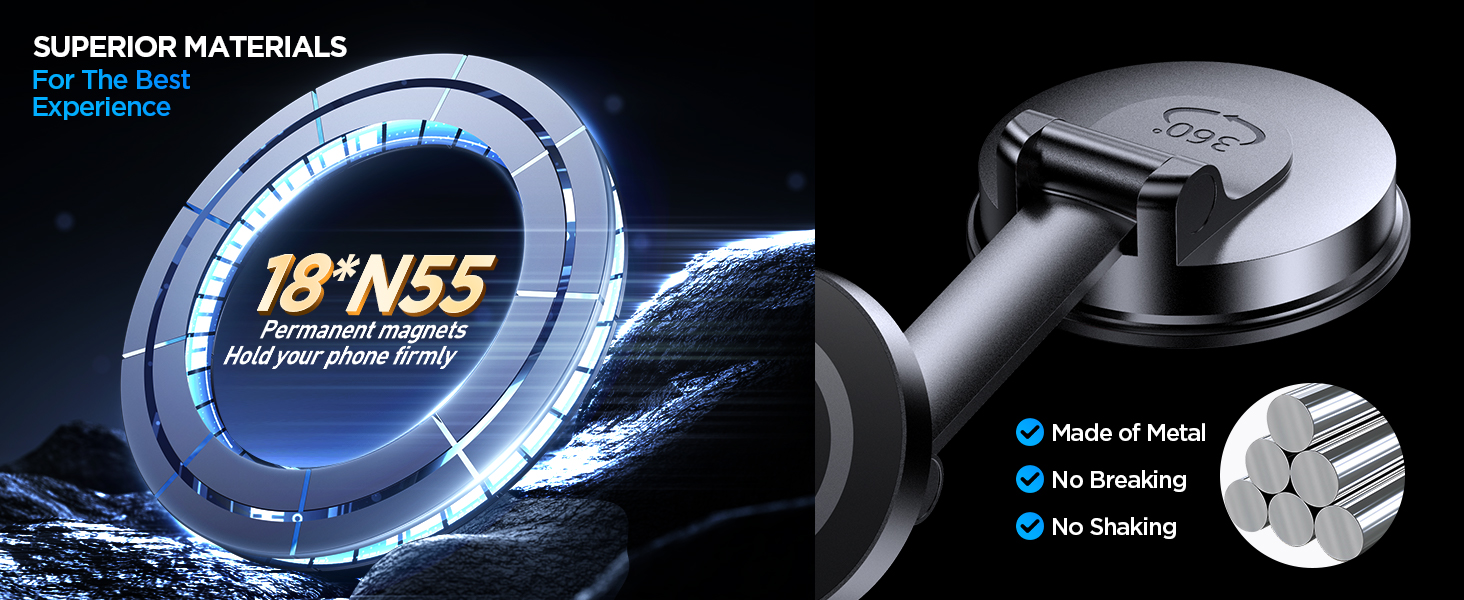 - MAGNETIC MASTERY - 18 premium N55 magnets deliver a rock-solid grip, keeping your phone secure even on the bumpiest rides.