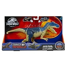 The Jurassic World Dual Attack Allosaurus is a medium-sized dinosaur action figure that features button-activated dual strike action, allowing for dynamic tail and head strikes. With realistic sculpting and articulation, this collectible figure is perfect for both play and display. It includes a Dino Rivals collector card and is compatible with the Jurassic World Facts app for an enhanced interactive experience.