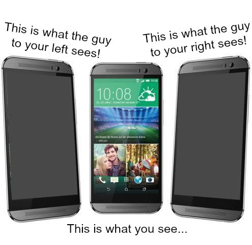 You need to use your HTC One M9 in public to stay connected, but that doesn't mean that you want your texts, emails and other activities to be public knowledge. Since it is not always possible to use your HTC One M9 in a private place, you can't afford to be without the privacy protection that comes with the NoPeek Privacy Screen Protector. The NoPeek Privacy Screen is a revolutionary screen protector that makes it virtually impossible for other people to view your smartphone screen. Once you have this screen protector in place on your phone, the screen will appear completely black to those sitting or standing around you, so you won't have to worry about busybodies spying or identity thieves trying to steal your personal information. With its matte finish, the NoPeek Privacy Screen dramatically reduces glare, making it much easier to use your phone outdoors. While it protects your privacy, the screen protector also shields the precious touchscreen of the HTC One M9 from damage. The durable screen protector virtually eliminates the risk of scratching that could cost you your phone. Unlike other options out there, the NoPeek Privacy Screen is incredibly easy to apply. A state-of-the-art, residue-free Japanese glue allows the HTC One M9 and screen protector to adhere firmly to the touchscreen perfectly on the first try. We guarantee you won't have a single bubble or bump after application! Warrantied for a lifetime, the NoPeek Privacy Screen Protector is the absolute best solution for protecting your screen. With the protector, you'll receive a tool to speed up application and a cleaning cloth. Don't give nosy people or identity thieves the chance to take advantage of you. Protect your cell phone and your privacy with the most reliable and easy to use privacy screen solution on the market today. Order the NoPeek Privacy Screen Protector for your HTC One M9 now.