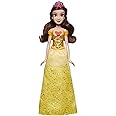 The Disney Princess E4159ES30 Shimmer Doll - Belle features a beautifully designed shimmering gown in her signature color, complete with a tiara and shoes. The removable skirt adds customizable play options. At just under 15cm tall and lightweight, this collectible doll is perfect for imaginative role-play and joining a set of 11 enchanting Disney Princess dolls.