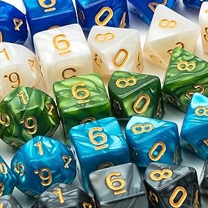 I got these for my first time D&D players with empty dice boxes, and they look great, roll great, just great priced and made dice.
