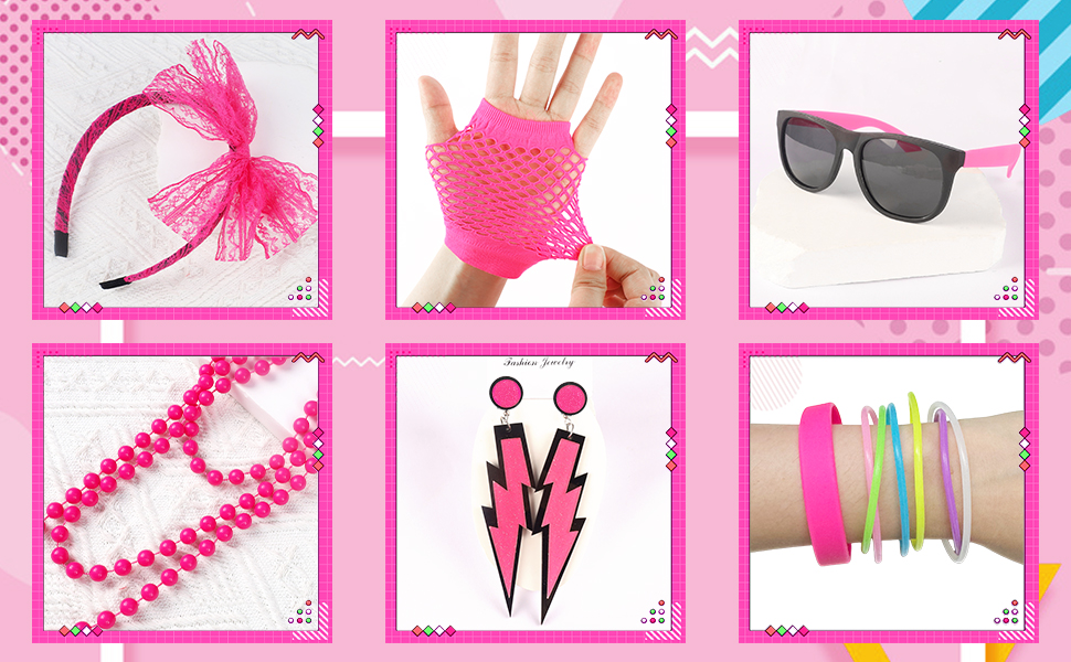 80s Fancy Dress Costumes Accessories, 1980s Fancy Style Dresses Party Sets & Kits for Women, Neon Leg Warmers Necklaces Bracelet Fishnet Gloves Lace Bow Headband Earrings Sunglasses