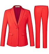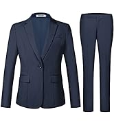 This women's 2-piece suit set features a slim-fit blazer with a notched lapel and one-button closure, paired with straight-leg pants equipped with an elastic side waistband for comfort. Crafted from a durable 80% polyester and 20% viscose blend, it offers a polished, versatile look ideal for professional and social occasions. Dry clean recommended for lasting quality.