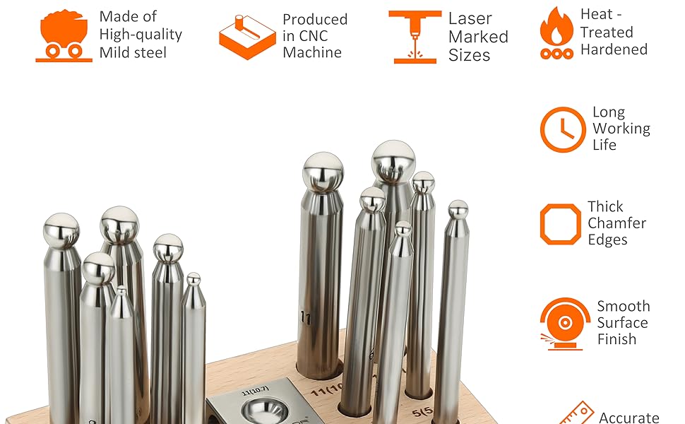 Splenor Tools 1" Square dapping Block & 12 Punch Set