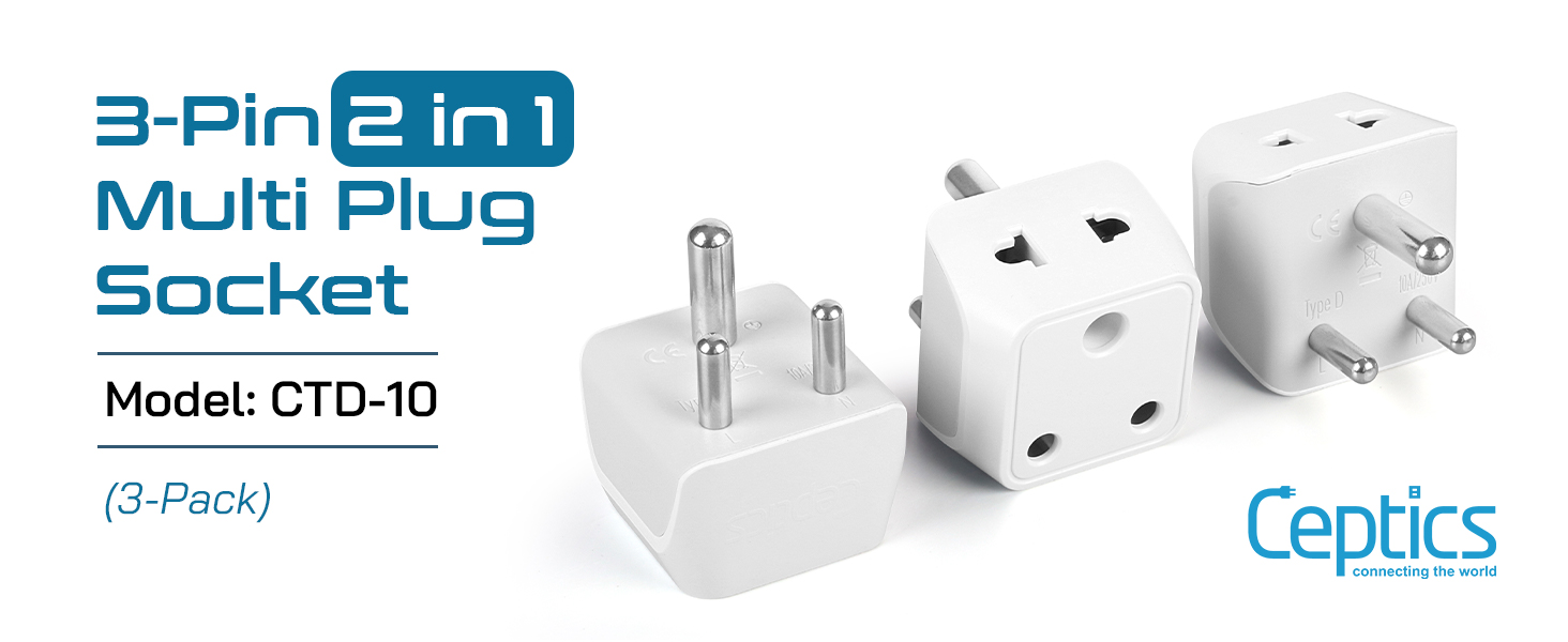 The Ceptics 2 in 1 Plug Extension Socket is a compact, dual-input Type D multi-plug socket designed for laptops, PCs, phones, and other electronics. It supports both grounded and non-grounded plugs, handles up to 10A/240V, and is CE & RoHS certified. Lightweight and travel-friendly, it comes with a lifetime limited warranty, making it a reliable power solution for professionals on the go.