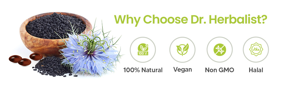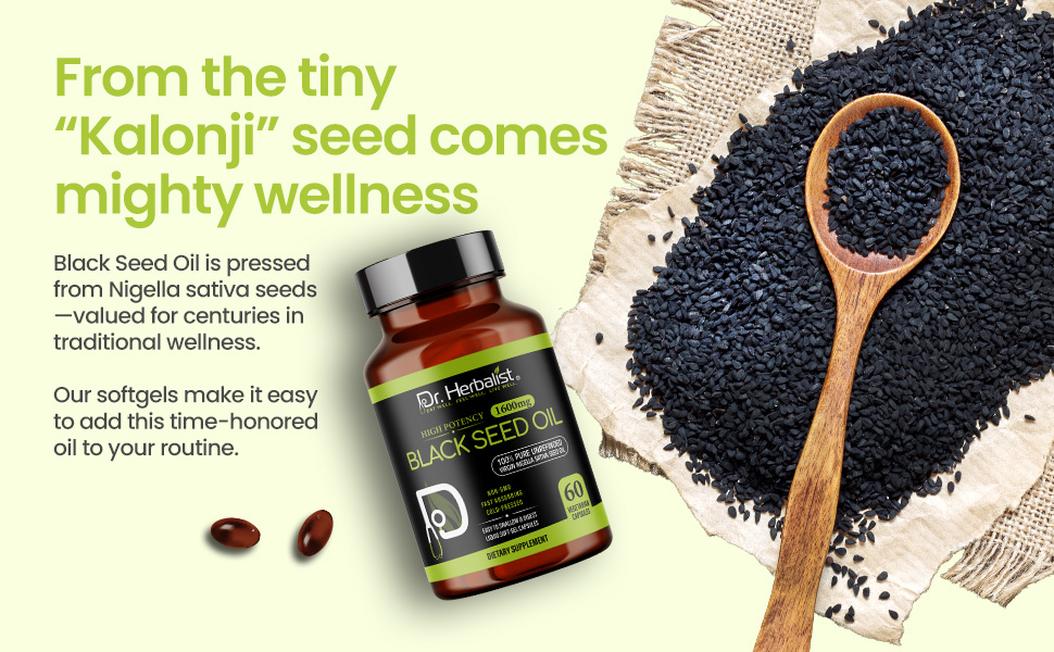 Dr. HERBALIST Black Seed Oil Capsules provide 120 servings of 1600mg pure, organic, cold-pressed Nigella Sativa oil, rich in natural thymoquinone (TQ). Non-GMO and vegetarian-friendly, these capsules offer a potent, clean, and convenient supplement designed to support overall wellness, immune health, and skin vitality.