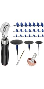The Anglekai 30+3PCS Tire Patch Roller Kit offers a comprehensive tire repair solution with 30 natural rubber patches in three sizes, a tungsten steel grinding head for efficient surface prep, and a sturdy alloy steel roller featuring a non-slip handle. Designed for durability and ease of use, this kit ensures strong adhesion and reliable sealing to keep your tires road-ready.