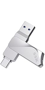 The SSK 64GB USB 3.2 Gen 1 flash drive features dual USB-C and USB-A connectors for seamless cross-device compatibility, delivering ultra-fast 200MB/s read speeds and a durable zinc alloy shockproof casing. Its 360° rotating design protects connectors while offering convenient portability, making it an ideal storage companion for professionals on the move.