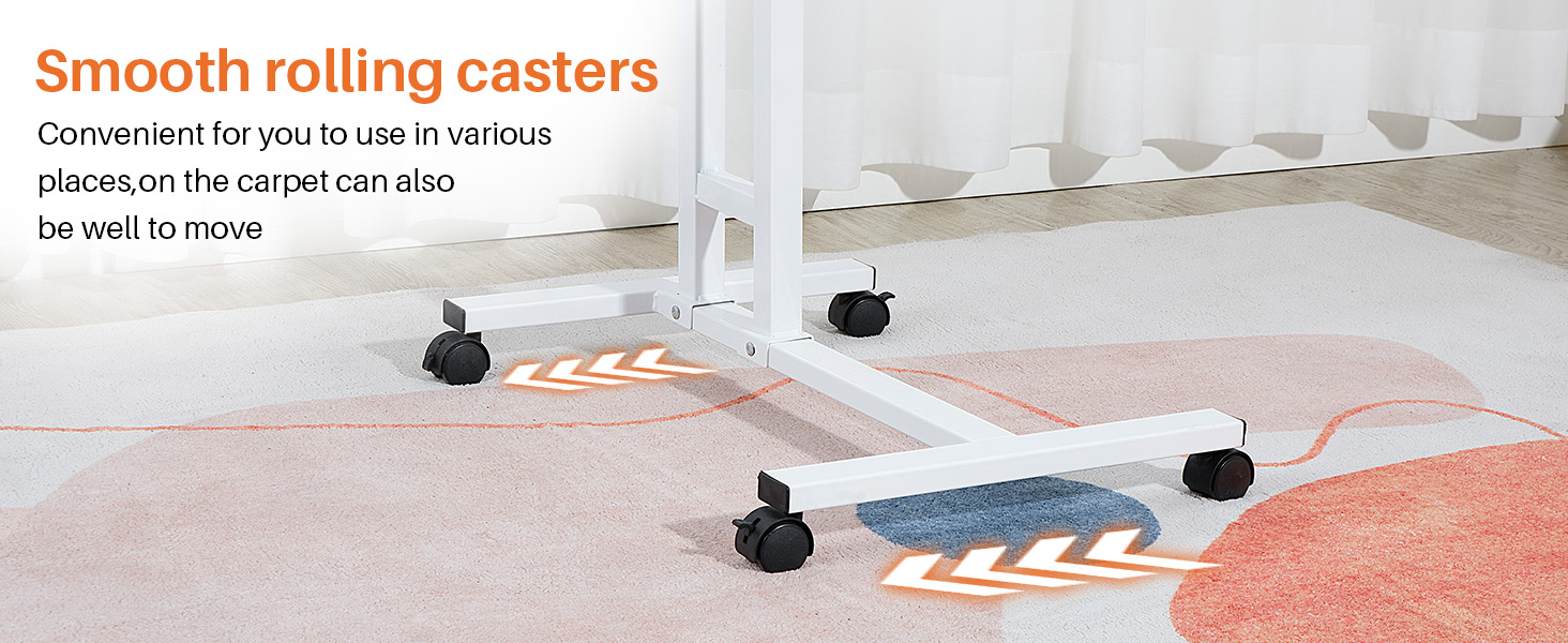 This Overbed Bedside Table features adjustable height from 26.26 to 37.4 inches, a 360° tilting engineered wood desktop with non-slip stops, and a sturdy metal H-frame supporting up to 33 lbs. Equipped with four locking swivel wheels, it easily moves on various surfaces and slides under beds or sofas. Ideal as a mobile standing desk, laptop cart, or bedside tray, it combines ergonomic design with versatile functionality for modern living.