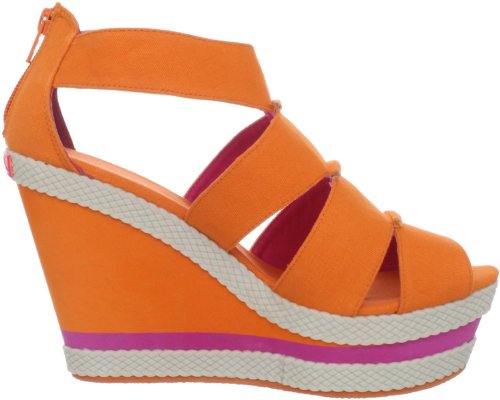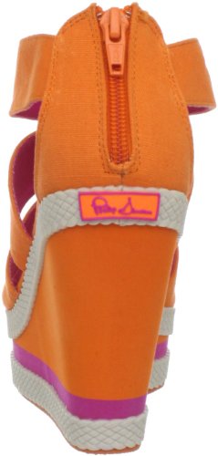 When you let your shoes do the talking, the "Aedyn" will speak volumes about your bold, carefree, and fun sense of style! With eye-catching, wide bands of coral canvas, this jaunty sandal from Philip Simon sports a cute zipper closure in the back and a sexy, uplifting wedge and rubber sole.