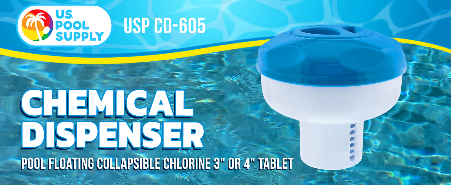 U.S. Pool Supply Pool Floating Collapsible Chlorine 3" or 4" Tablet Chemical Dispenser, 8" Diameter - Adjustable Balanced Chemical Delivery