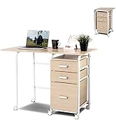 The COSTWAY Folding Sewing Table is a versatile 2-in-1 rolling craft table and storage cabinet designed for space-conscious professionals. Featuring a foldable design, multiple storage shelves, and five casters (two lockable), it offers mobility and stability. Made from durable MDF with premium hinges, it supports up to 55kg. Easy to assemble and maintain, this white sewing table doubles as a computer desk, perfect for organized, stylish workspaces.
