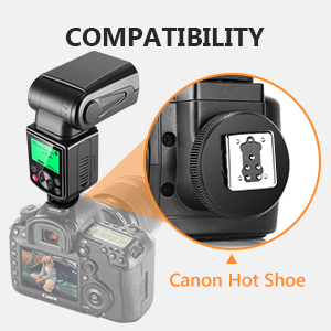 I now have two of these NEEWER Speedlites which I use as slave units along with my old Canon 580EXII Speedlite& 430EXII. They can be triggered by the flash of the main flash. I adjust the power manually (meter if necessary) off camera. On camera flash power / exposure is via ETTL. Great value for money.