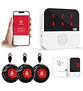 This Wireless Caregiver Pager Call Button System features six waterproof call buttons and one receiver with a 500-foot wireless range. It offers 38 customizable ringtones, 5 volume levels up to 110dB, and an LED number display for easy identification. Ideal for elderly, disabled, or patient care at home, hospitals, or clinics, it supports easy wireless installation and system expansion to ensure immediate, reliable communication.