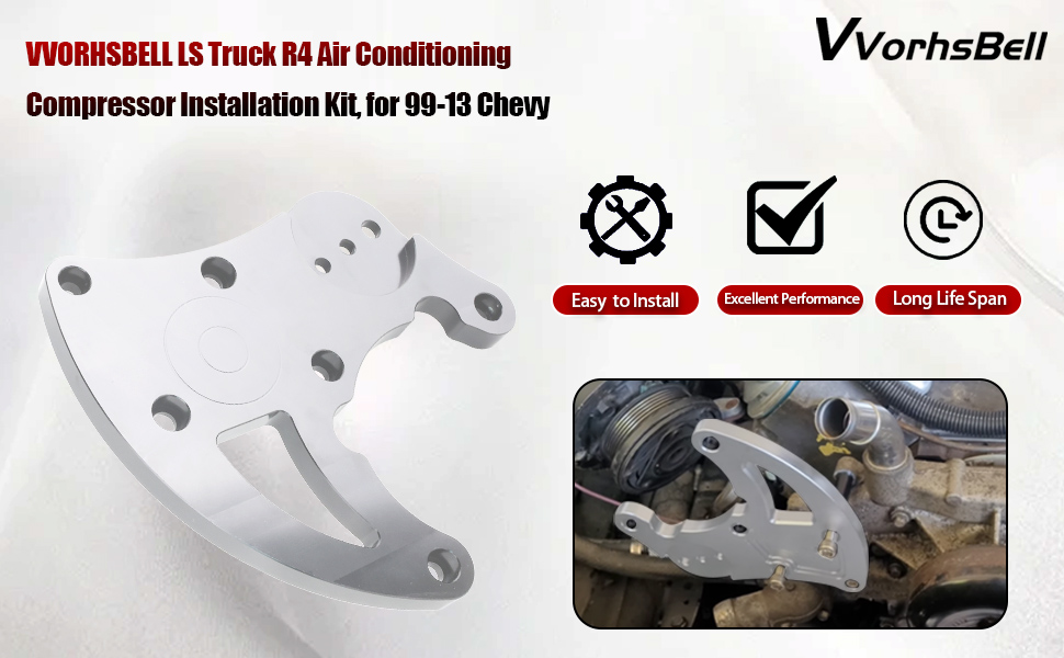 VVORHSBELLLS R4 AC Compressor Bracket Kit Compatible with Chevy GMC LS LQ LS2 LS3 LS6 1999-2013
